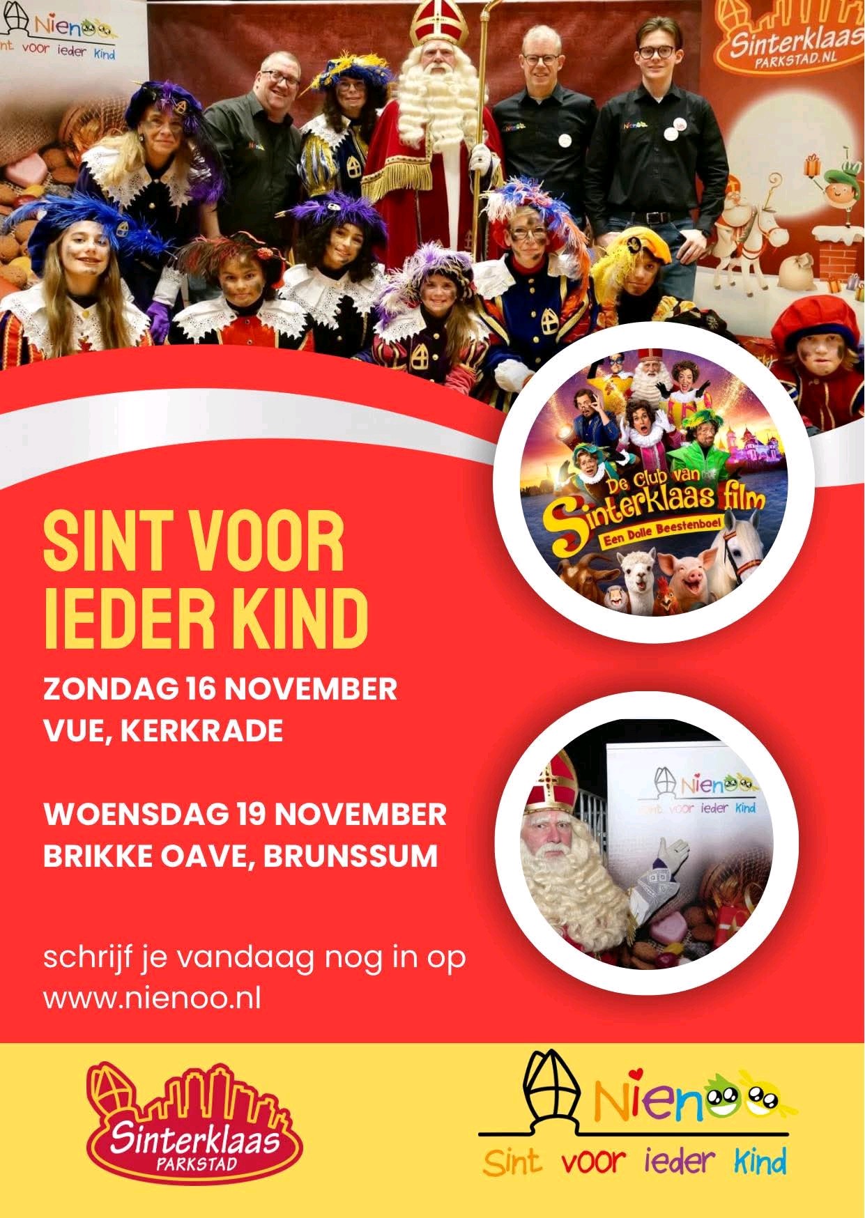 Sinterklaas is er voor ieder kind. Toch is dit niet voor alle gezinnen vanzelfsprekend. In samenwerking met Sinterklaas Parkstad organiseert Stichting Nienoo om deze reden een groot sinterklaasfeest in de Brikke Oave in Brunssum. Een feest waarbij financiële omstandigheden geen rol spelen.
