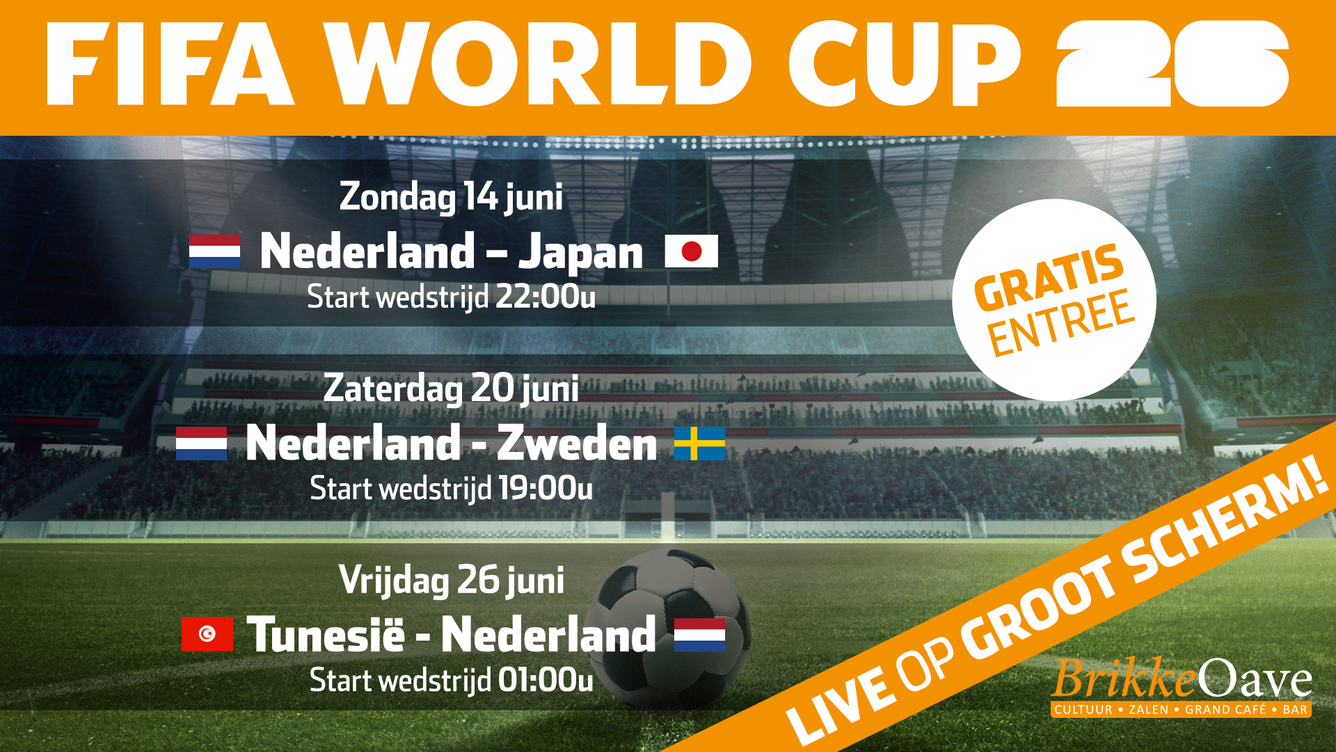 Ook de wedstrijd Tunesië – Nederland kijk je bij de Brikke Oave op groot scherm. Door het late tijdstip is dit geen standaard wedstrijd, maar juist eentje voor de echte liefhebbers! Midden in de nacht Oranje kijken heeft iets bijzonders en dat doe je samen bij de Brikke Oave!